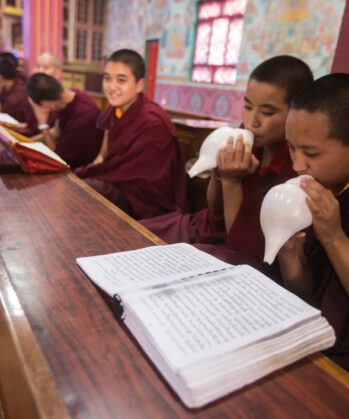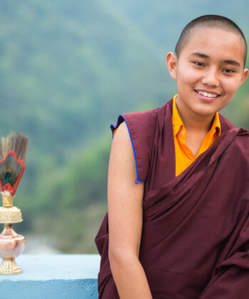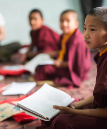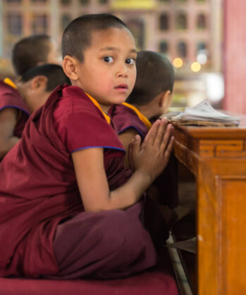Einige Eltern schicken ihre Kinder daher in Klosterschulen – dort können sie umsonst lesen und schreiben lernen und im Klosterinternat leben. Weg von ihrer Familie. Aber gut aufgehoben in einem sicheren Umfeld. Auf dem Stundenplan stehen neben „normalen“ Unterrichtsfächern wie Englisch, Mathematik oder Erdkunde vor allem auch die buddhistische Lehre, Beten und die tägliche Meditation. Nach der Schule können die Kinder selbst entscheiden, ob sie weiter als Mönch leben möchten oder einen anderen Lebens- bzw. Berufsweg einschlagen.