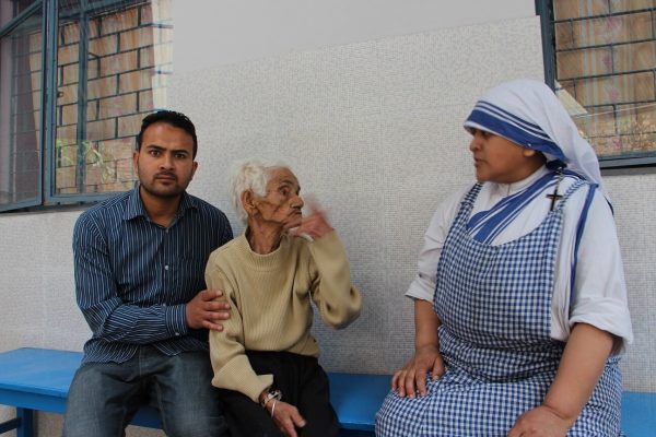 Die Menschen, die sich noch selbst versorgen können, leben im vorderen Bereich des Altenheims. Die, die auf Hilfe angewiesen sind, leben im hinteren Bereich. Wenn man ins Altenheim hineingeht wird man erstmal von allen mit einem freundlichen Lächeln und Namaste begrüßt.