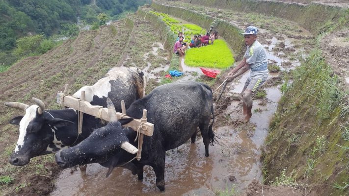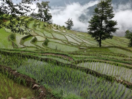 Mein absolutes Highlight war jedoch der Reisanbau. Da ich zur Monsunzeit in Gaujini war, wurde überall und fast täglich Reis angepflanzt. Wirklich ein unvergessliches Erlebnis, wenn man inmitten einer überfluteten Terrasse mit Reisbüscheln in der Hand versucht, den geschickten Nepalesen ihre Arbeit nachzumachen. Eine ordentliche Schlammschlacht darf natürlich auch nicht fehlen, vor allem wenn Laxmi mit euch mitkommt, sie kennt kein Pardon und niemand ist vor ihr sicher.
