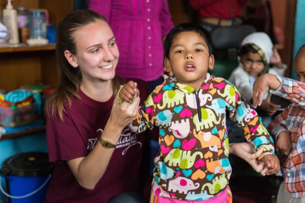 Ich hatte klare Sicht beim Landeanflug aus dem Flugzeugfenster auf die wunderschönen Berge von Kathmandu. Am Ausgang des Flughafens waren erst mal hundert Schilder von Hotelmitarbeitern aber kein Karmalaya Schild zu sehen. Freundlicherweise hat mir ein Nepali mitgeteilt, dass ein Streik ist und es dabei zu viel Stau in der Stadt gekommen ist. Es hat nicht lange gedauert und ich saß mit dem Karmalaya Mitarbeiter in einem kleinen alten Taxi und wir fuhren auf der Ringstraße durch die Stadt. Der Fahrstil (immer hupen und ständiges Straßenseiten wechseln) hat für mich noch nicht viel Sinn ergeben aber dachte mir: „Solange die Nepalis sich auskennen werde ich sicher ankommen.“ Durch die holprigen Straßen und Menschenmengen sind wir relativ schnell am Volontärhaus angekommen, wo ich schon herzlich erwartet wurde. Zur Begrüßung hat mir meine Aama eine Tika (roter Punkt, hinduistisches Segenszeichen) auf die Stirn gemacht, die ich in den weiteren Wochen öfters bekommen habe und wurde auch gleich mit dem Nationalgericht Dhaal Bhaat bekannt gemacht. Mit den anderen Volontären habe ich mich auch von Anhieb an verstanden und dadurch, dass Kathmandu die erste Anlaufstelle der Volontäre ist, war so gut wie immer jemand da mit dem ich Zeit verbringen konnte.
