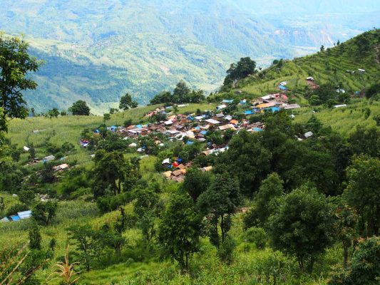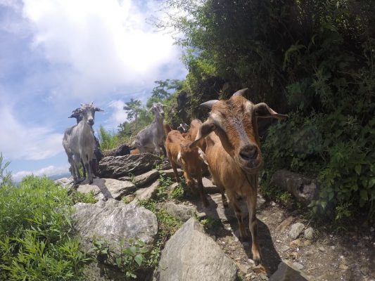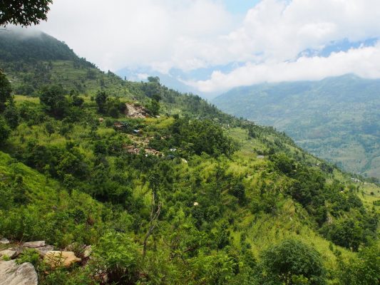 Die nächsten Tage vebrachten wir mit Steine tragen und wir machten auch eine kleine Wanderung in der näheren Umgebung des Dorfes wo wir die Möglichkeit hatten die Herstellung von Buttermilch auf einer Alm zu beobachten. Der Rückmarsch führte uns auf einen dichtbewachsenen Dschungel -Trek zu einem kleinen Plateau mit tollem Blick auf den Ganesh.